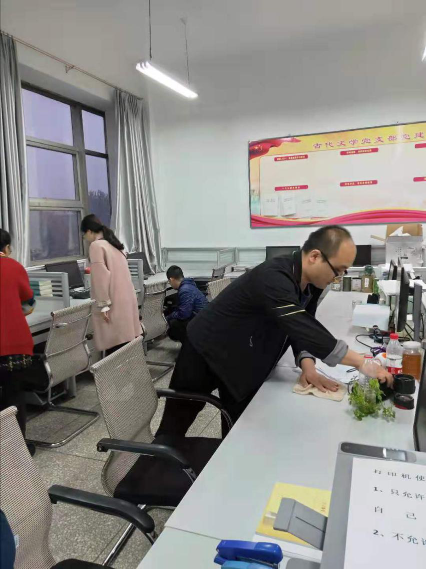 下午六点钟,全体党员已经自行携带卫生工具,早早地在资料室门口等候。白建忠同志和鲁立智同志进行了简短动员和简单的工作安排后,带领全体党员相互协同配合对图书资料室进行了整理、清洁。所有工作完成之后,同志们对清洁区域做了二次检查后才放心地离开。开展此次志愿服务活动,旨在为广大师生创造了一个更加美好更加舒适的学习和工作环境。