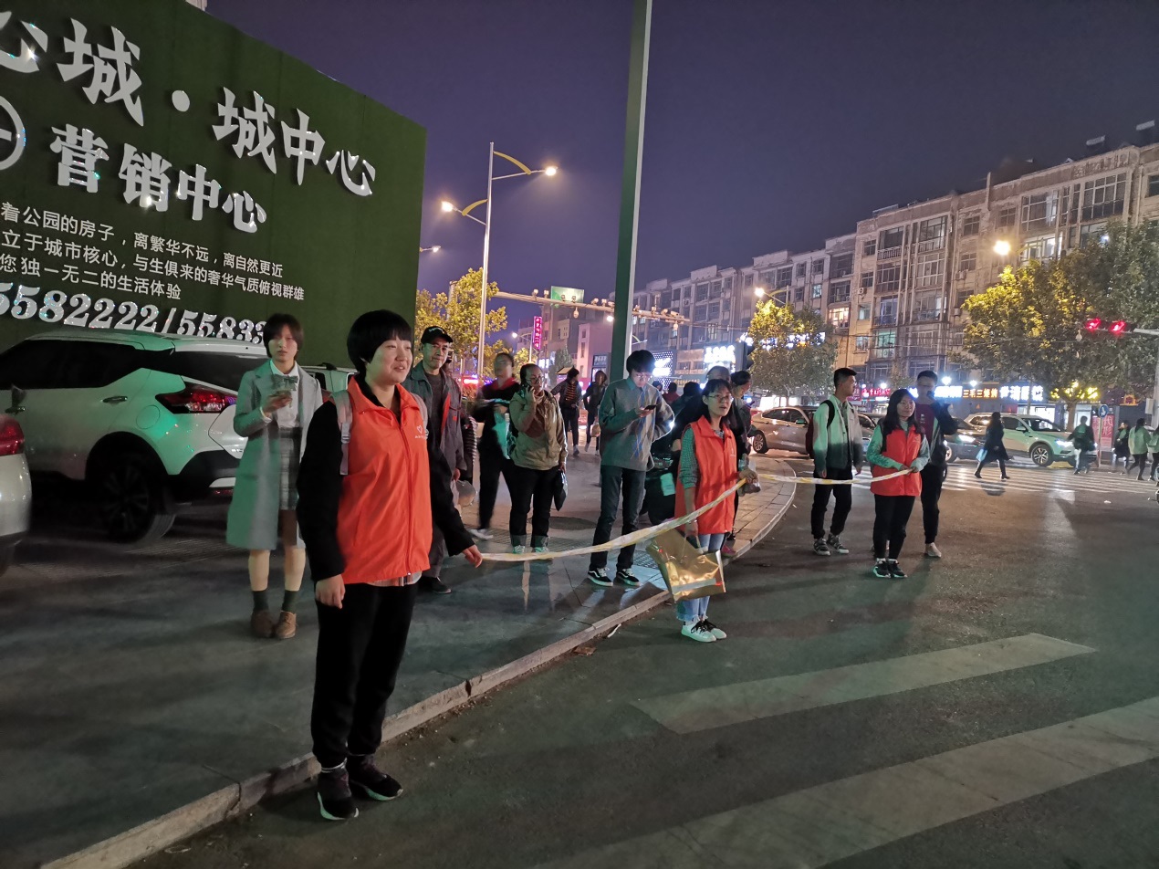 活动中,小组成员分别站于来往华盛小区和新松小区的红绿灯十字路口处,使用小红旗指示、手势引导等方式指挥行人,从而规范来往学生及市民横穿马路的行为。