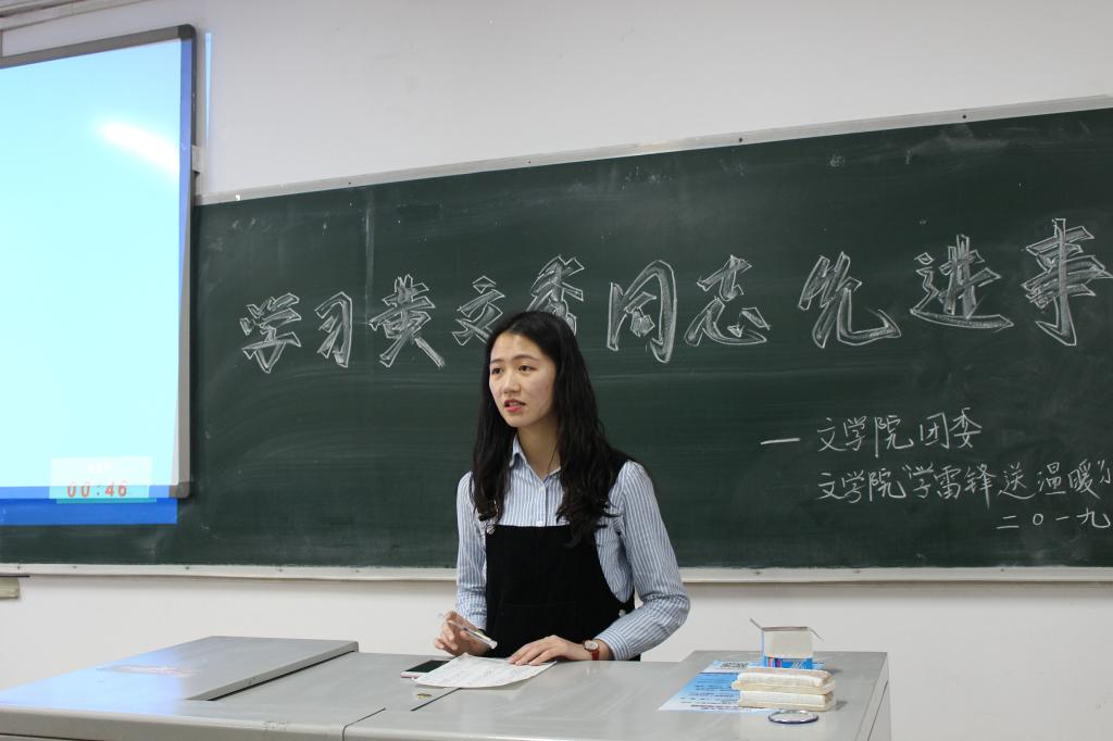 “学雷锋,送温暖”小组学生党支部在12206教室开展黄文秀事迹宣讲活动。150余名青马学员参加,活动由“学雷锋,送温暖”小组学生党支部预备党员闫慧敏主持。
