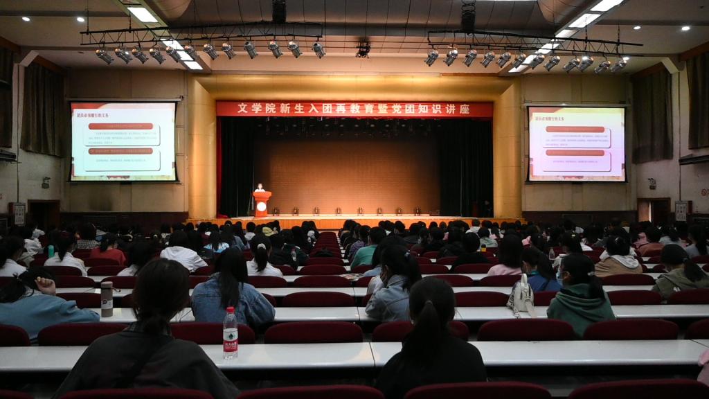 于大礼堂举办2020级新生入团再教育暨党团知识讲座。讲座邀请18级团支书徐振洲、崔滢蕊进行分享,六合彩网站