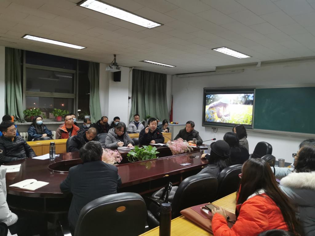 会议室召开全体教职工大会,会议围绕加强政治理论学习、社科项目申报再部署、对标师范专业认证三个主题进行。院长赵变亲主持会议。